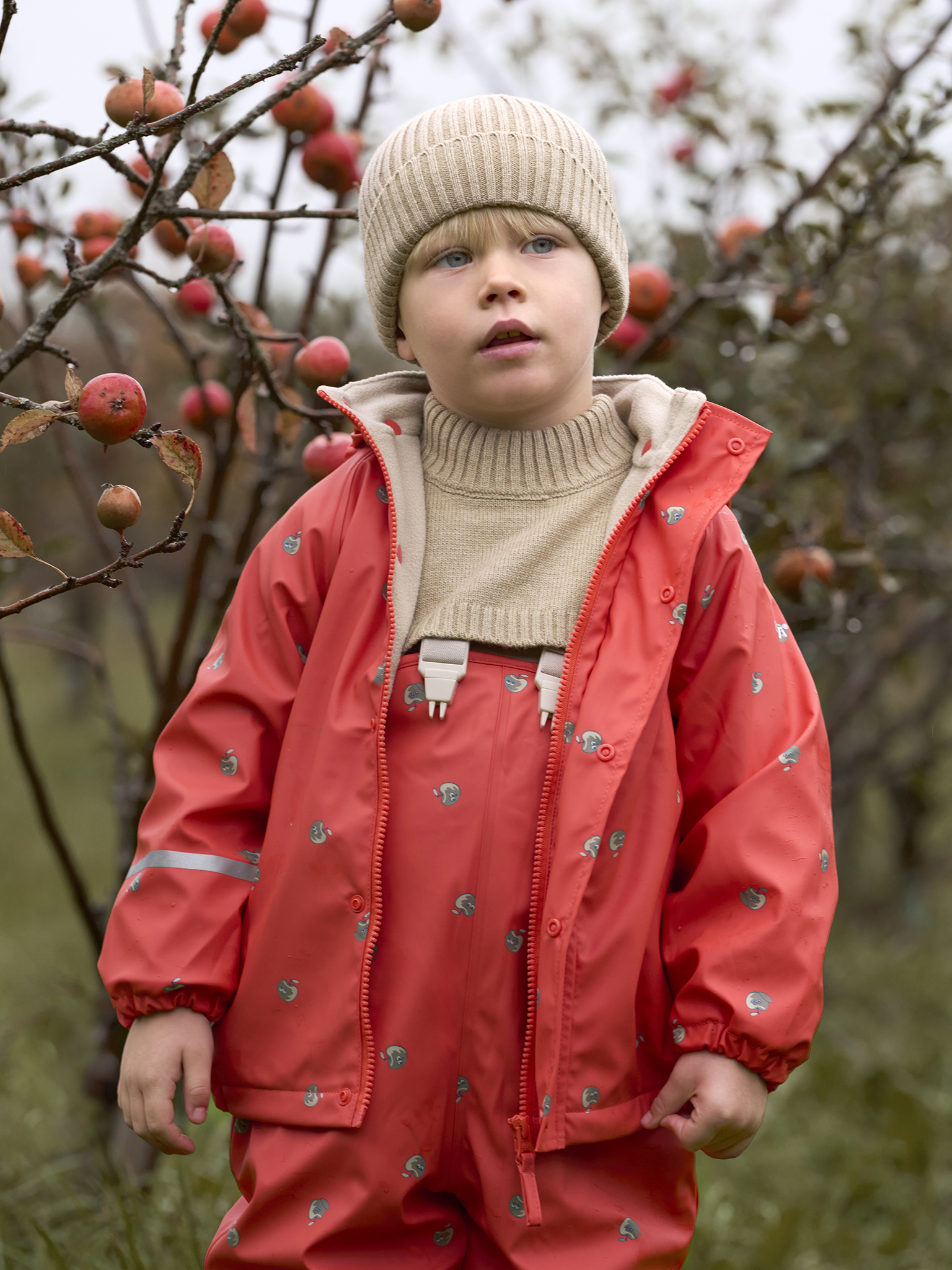 Kombinácia oblečenia do dažďa, gumákov a vlny zaisťuje, že sa dieťa môže hrať vonku za každého počasia. Krásne potlače a farby zodpovedajú požiadavkam každého dieťaťa