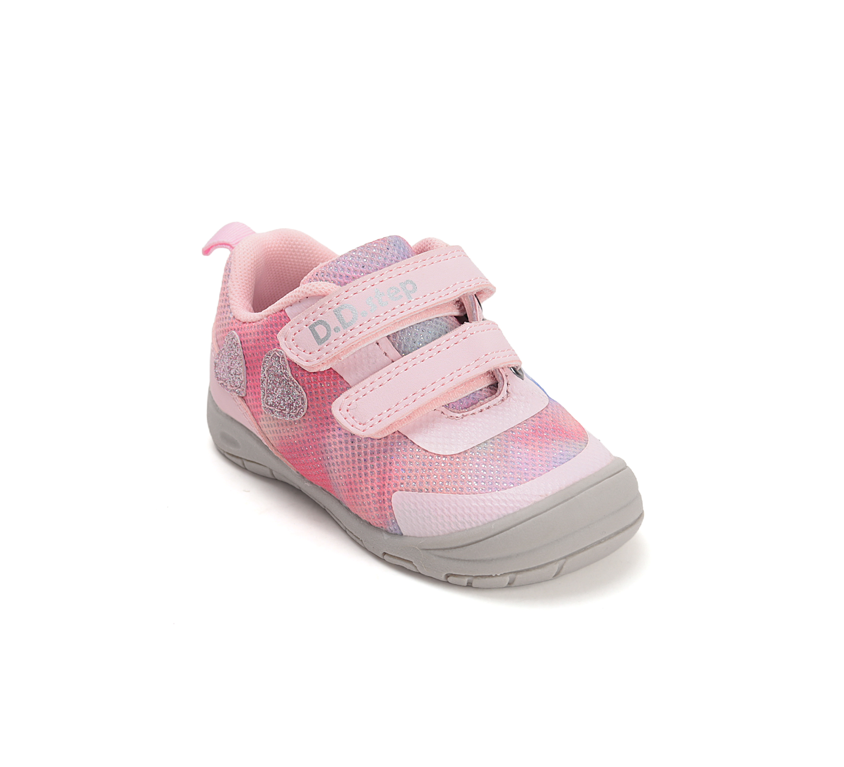Ľahké detské športové tenisky F065-61776B od D.D.Step s priedušným zvrškom vhodné na každodenné nosenie aj aktívny pohyb. Model má priestrannú okrúhlu špičku pre dostatok miesta pre prsty a mierne spevnenú pätu pre stabilitu. Mäkká kožená stielka zabezpečuje pohodlný došľap a flexibilná gumená protišmyková podrážka dobrú priľnavosť pri chôdzi.