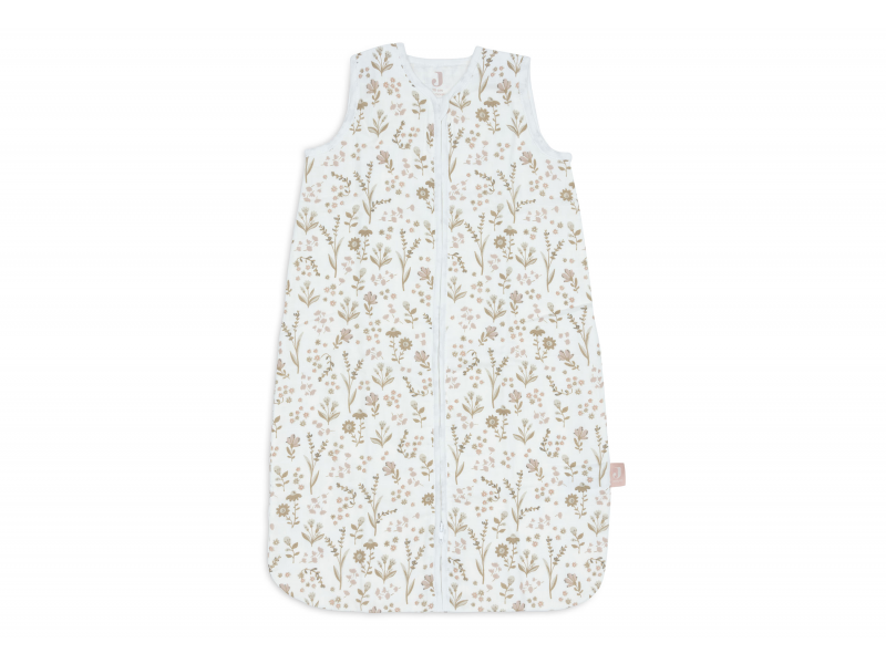 Ľahký spací vak Bloomy od Jollein z jemnej 100% bavlny má zips na prednej strane pre ľahké vloženie dieťaťa do spacieho vaku aj prebaľovanie počas spania.