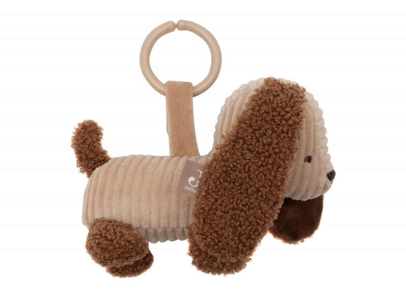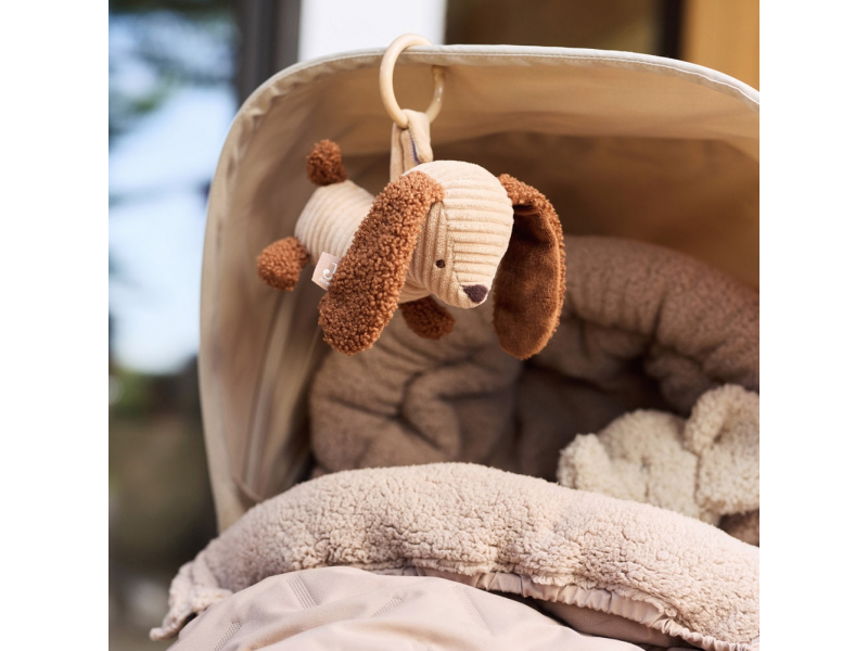 Rozkošný závesný psík Diego od Jollein z mäkkej rebrovanej látky s buklé detailmi je ideálnym spoločníkom pre vaše bábätko na prechádzkach a výletoch. Vďaka plastovému krúžku ho ľahko pripevníte na kočík alebo autosedačku.