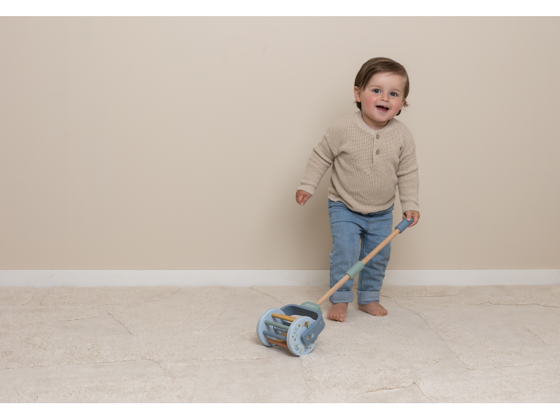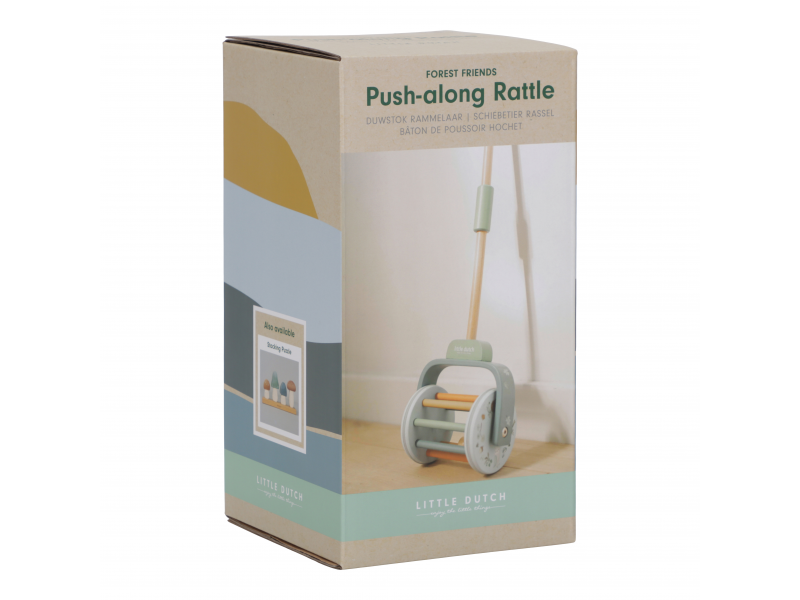 Drevený hrkajúci valček na tyči Little Dutch Forest Friends v krásnom drevenom prevedení láka dieťa, aby ho tlačilo pred sebou. Loptičky vo vnútri valčeka pri pohybe hrkajú, dieťa je motivované k samostatnej chôdzi a zároveň mu držanie hračky dodáva pri chôdzi pocit väčšej istoty.