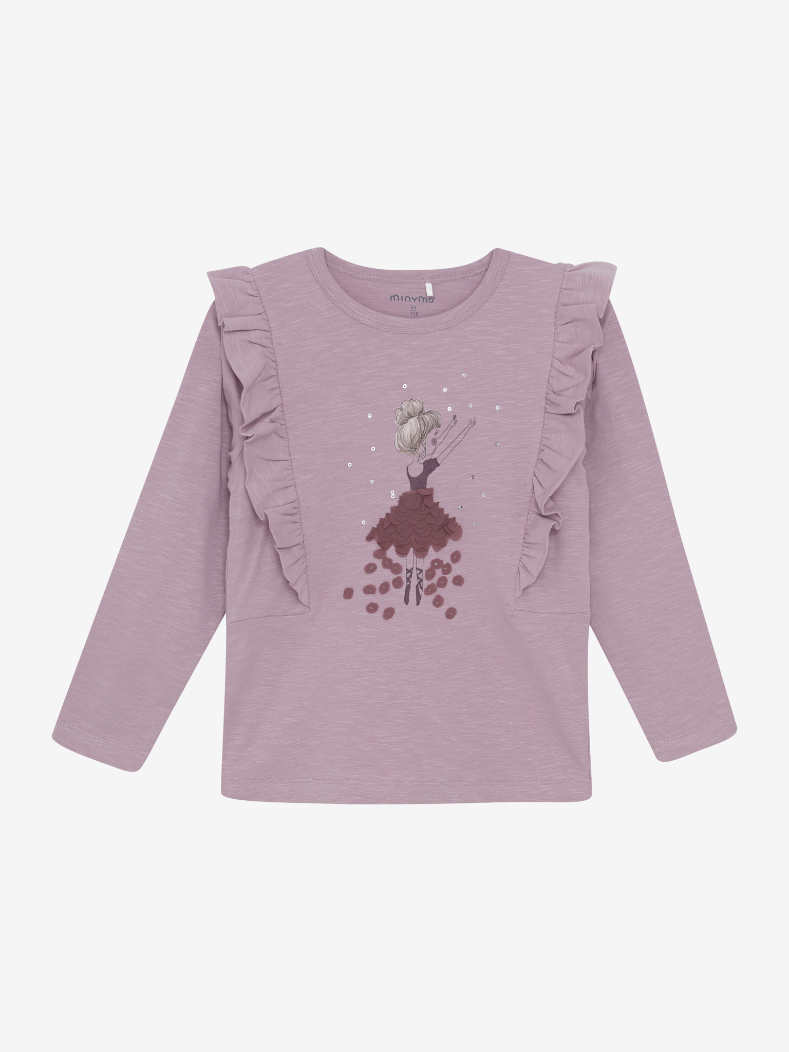 Krásne detské tričko s dlhým rukávom v dizajne Woodrose od škandinávskej značky Minymo. Blúzka s dlhým rukávom od značky Minymo. Blúzka má sladký a elegantný vzhľad s jemnými volánikmi pozdĺž ramien. V strede je krásna potlač baleríny s 3D efektmi a malými flitrovými detailmi. Blúzka je vyrobená zo zmesi organickej bavlny, ktorá je mäkká a príjemná na dotyk.